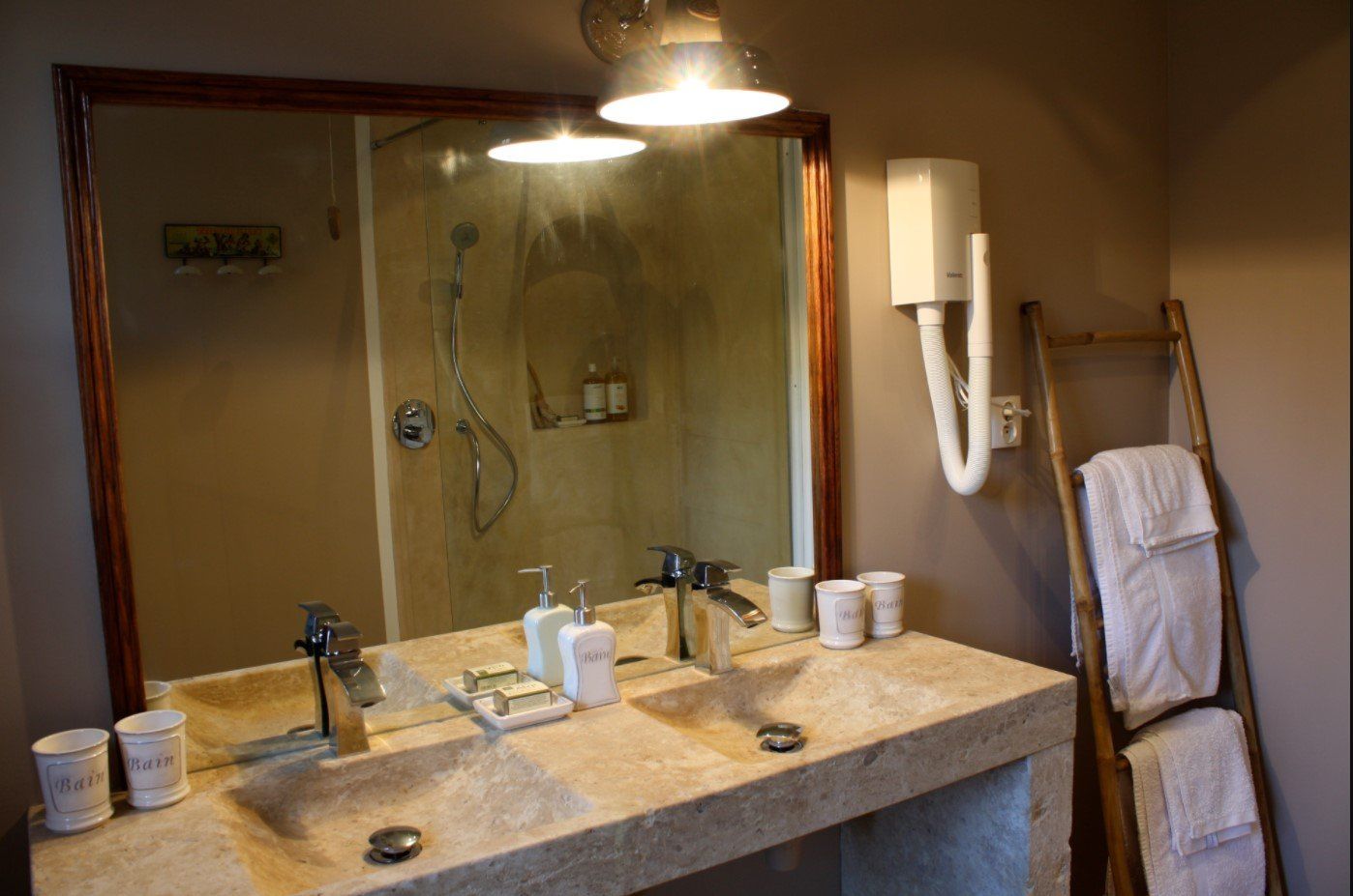 Salle de bains des 2 chambres. 2 lavabos et une douche.
